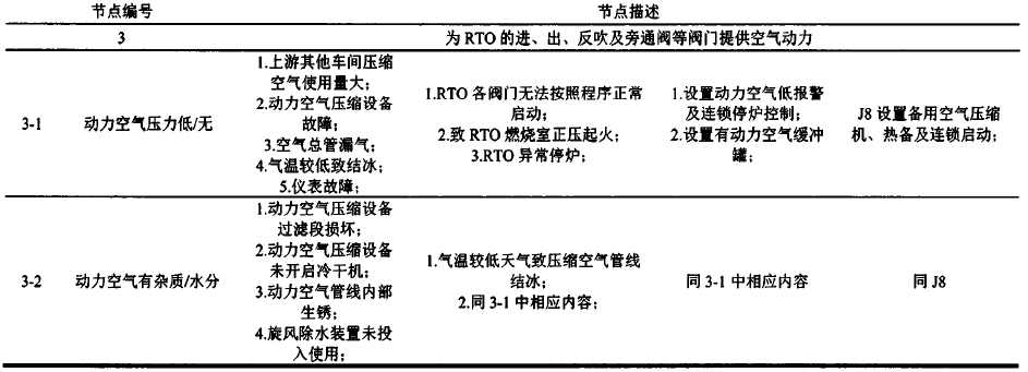 (8)备用空气压缩机并使备用机处于热备状态,当动力空气压力低时能连锁启动,及时补充并保证动力空气压力满足工况要求,确保RTO各阀门处于正确状态。